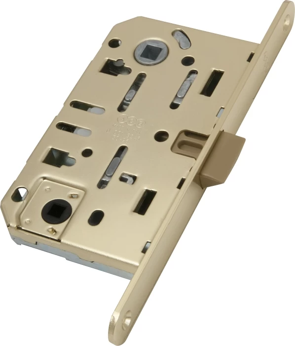 Замок врезной бесшумный B01102.50.03 с защелкой WC серии MEDIANA EVOLUTION предназначен для установки в межкомнатные двери. Подходит для левых и правых дверей. Более тихий замок благодаря новой конструкции и новым внутренним компонентам. Бесшумная пластиковая защелка с двойным наклоном может фиксироваться ключом внутри замка (при перевозке деревянного полотна). Новая защищенная патентом система поворота защелки. Цвет: латунь.