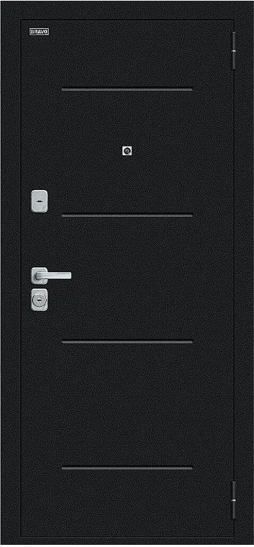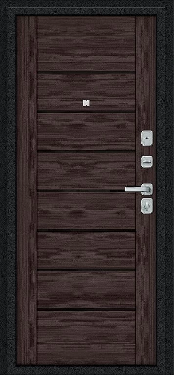 Надежная входная Дверь Браво Техно/BChrome Букле черное/Wenge Melinga премиум класса по цене 35 551 руб. Большая толщина стали защитит от проникновения в ваш дом, квартиру или коттедж. Используется очень качественная фурнитура: замки, цилиндры, ручки, защелки. Покрытие и отделка двери изготовлено под внимательным контролем производителя. Дверь имеет долгий срок службы и гарантию.