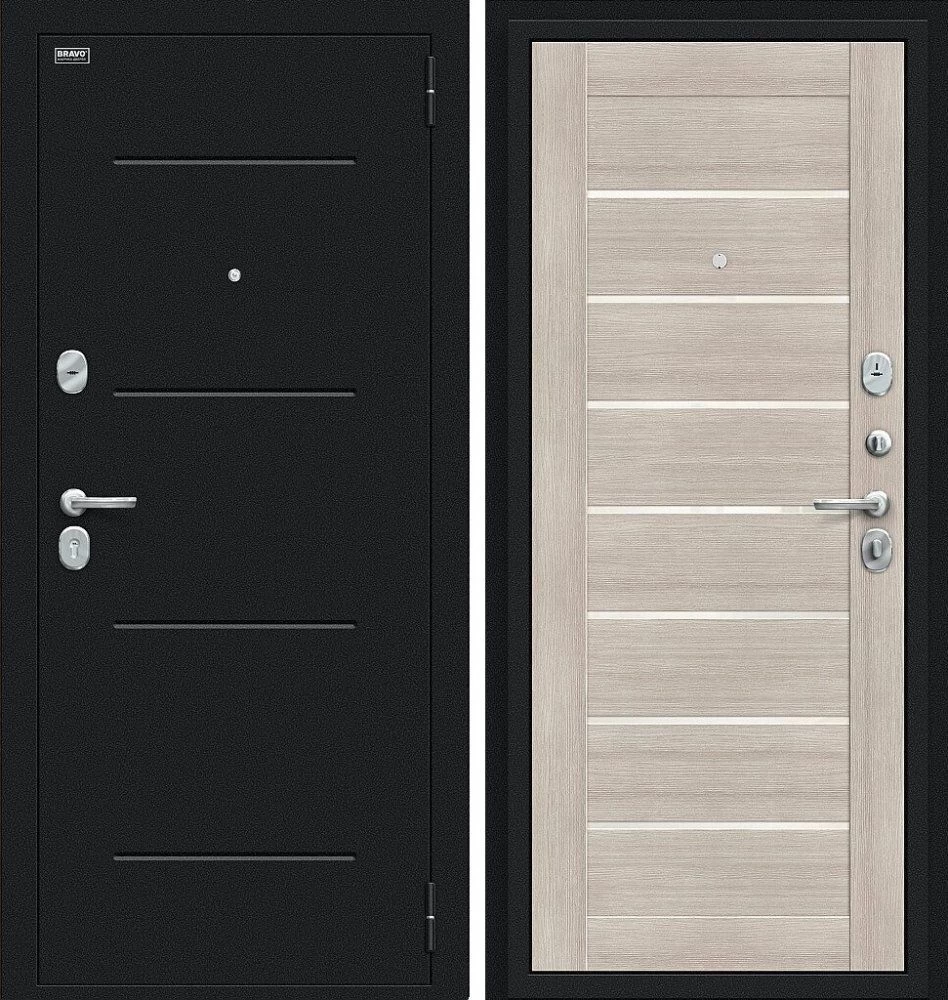 Надежная входная Дверь Браво Техно Букле черное/Cappuccino Veralinga премиум класса по цене 31 901 руб. Большая толщина стали защитит от проникновения в ваш дом, квартиру или коттедж. Используется очень качественная фурнитура: замки, цилиндры, ручки, защелки. Покрытие и отделка двери изготовлено под внимательным контролем производителя. Дверь имеет долгий срок службы и гарантию.