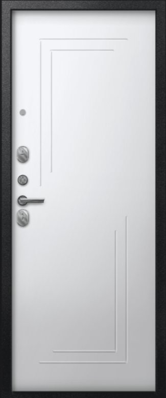 Надежная входная Дверь A-06 черный сатин - кашемир белый премиум класса по цене 30 381 руб. Большая толщина стали защитит от проникновения в ваш дом, квартиру или коттедж. Используется очень качественная фурнитура: замки, цилиндры, ручки, защелки. Покрытие и отделка двери изготовлено под внимательным контролем производителя. Дверь имеет долгий срок службы и гарантию.