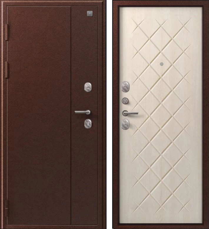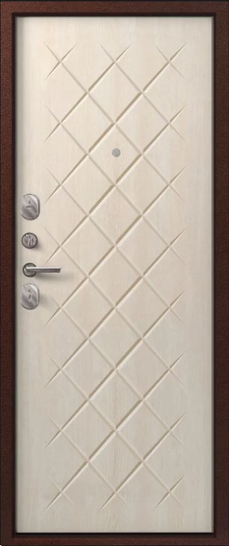 Надежная входная Дверь V-02 медь антик - седой дуб премиум класса по цене 37 401 руб. Большая толщина стали защитит от проникновения в ваш дом, квартиру или коттедж. Используется очень качественная фурнитура: замки, цилиндры, ручки, защелки. Покрытие и отделка двери изготовлено под внимательным контролем производителя. Дверь имеет долгий срок службы и гарантию.